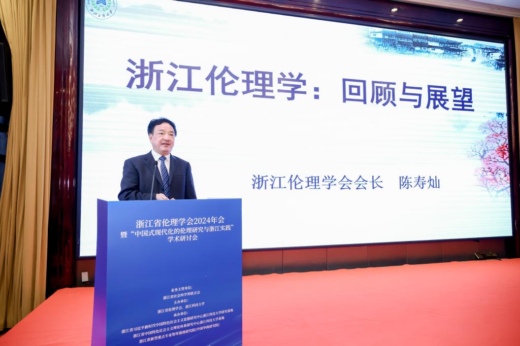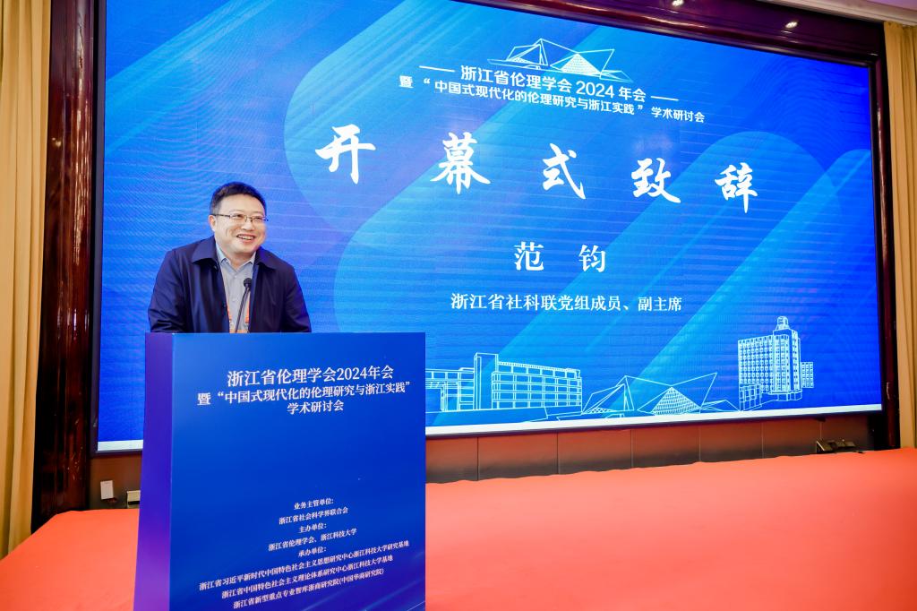 11月23至24日,浙江省伦理学会2024年会暨“中国式现代化的伦理研究与浙江实践”学术研讨会在杭州召开。本次研讨会由浙江省伦理学会、浙江科技大学主办,浙江省习近平新时代中国特色社会主义思想研究中心浙江科技大学研究基地、浙江省中国特色社会主义理论体系研究中心浙江科技大学基地、浙江省新型重点专业智库浙商研究院(中国华商研究院)承办。