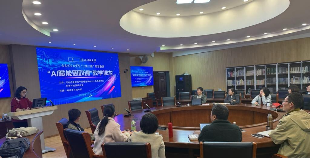 为深入贯彻落实教育数字化战略部署,推动人工智能与高校思政课教学深度融合,马克思主义学院习近平新时代中国特色社会主义思想概论教研室、形势与政策教研室、中国近现代史纲要教研室于2025年11月27日、12月11日联合举办“AI赋能思政课教学沙龙”系列集体备课系列活动,特邀超星公司学习通平台专家进行专题授课。